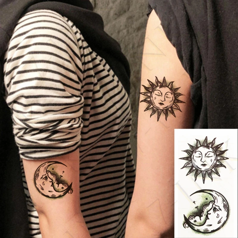 2 Pack Sun Moon Temporary Tattoo Totem Wrist Minimalist Waterproof Star Solar Ebay